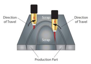 جهت حرکت در اینکه ایجاد زاویه در کدام سوی قطعه قرار گیرد مهم است . برشکاران ماهر با تعیین جهت حرکت سعی می کنند که سطح شیبدار در قسمت ضایعات قرار گیرد .