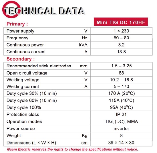 Mini TIG 170 HF ، با ساختاری بر اساس آخرین فناوری اینورتری، جریان مستقیم جوشکاری را به صورت آنالوگ کنترل می کند. این مولد قدرتمند 100KHz که بر اساس آخرین نسل مدارات سوئیچیینگ IGBT طراحی و ساخته شده، با استفاده از ترانسفورماتور سطحی قادر است بر روی تمامی فلزات به غیر از آلومینیوم و منیزیم و آلیاژهای آنها جوشکاری نماید.